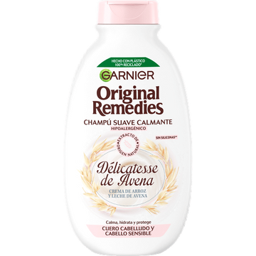 El champú Délicatesse de Avena de Original Remedies combina la crema de arroz y la leche de avena en un remedio auténtico que hidrata el pelo y calma el cuero cabelludo sensible.