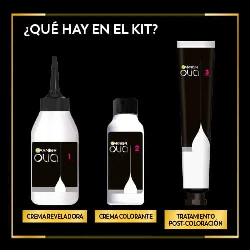 Garnier Olia es una coloración permanente con aceites florales de origen natural, sin amoniaco para un olor agradable y respeto del cuero cabelludo. Coloración tras coloración, mejora visiblemente la calidad de tu pelo para un color intenso más brillante y más bonito, y un pelo sedoso y cuidado. 100% cobertura de canas.